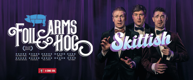 Foil Arms and Hog are back with their brand-new show, Skittish. A mix of sketch comedy, audience participation and improvisation. With over one billion views you may know the lads from their online videos, but their live show is where they're at their best.