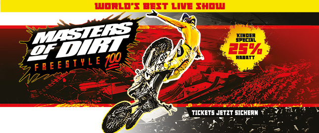 Masters of Dirt ist eine weltweit führende Live-Action-Sport-Entertainment-Marke, die internationale Spitzenathleten, innovative Produktionsdesigns und authentische Freestyle-Kultur vereint. Die Show bietet energiegeladene, familienfreundliche Erlebnisse, die Arenen in ganz Europa und darüber hinaus elektrisieren.